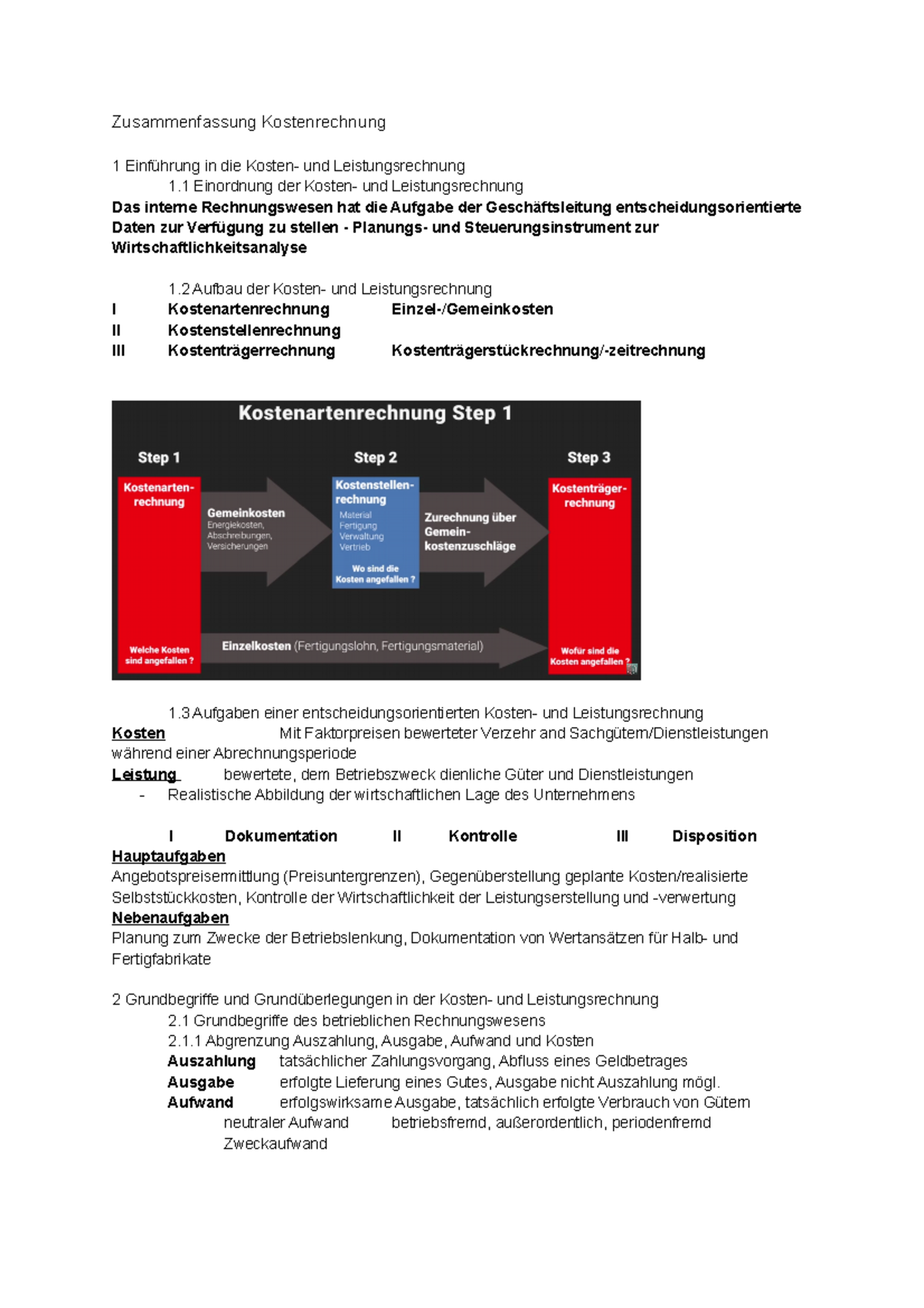 Zusammenfassung Kostenrechnung 1 Abgrenzung Auszahlung, Ausgabe, Aufwand und Kosten Auszahlung