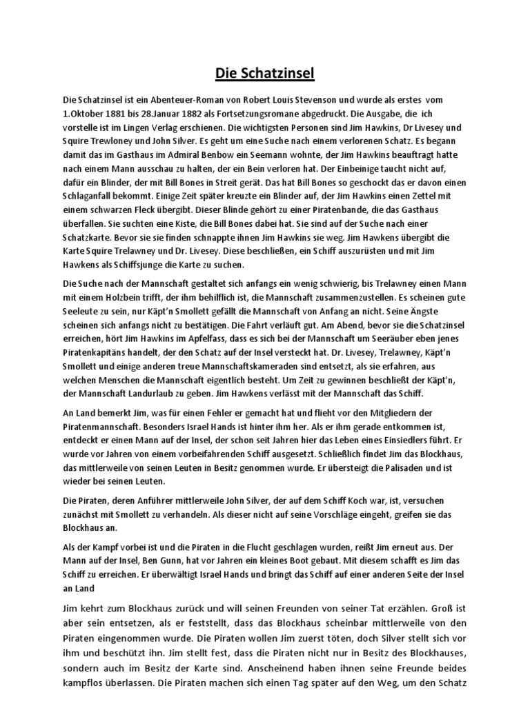 Die Schatzinsel Zusammenfassung Des Inhalts PDF