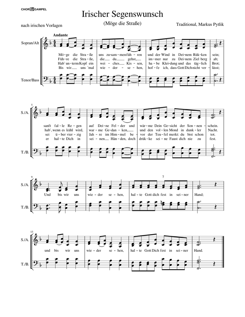 2 Irische Segenswünsche Pytlik Markus Noten einfach online ka