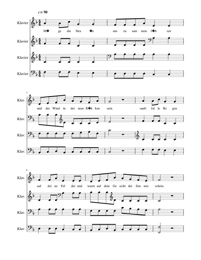 Download and print in PDF or MIDI free sheet music of Irische Segenswünsche - Misc Traditional for Irische Segenswünsche by Misc Traditional arranged by klausicrusi for Piano (Solo) Scores. Courses. Songbooks. Upload Log in. Off. 100%.