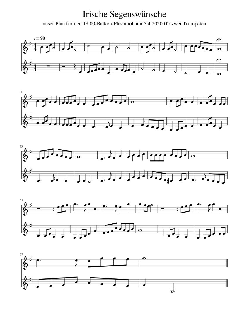 Irische segenswünsche Sheet music for Trumpet (In B Flat) (Brass Duet)