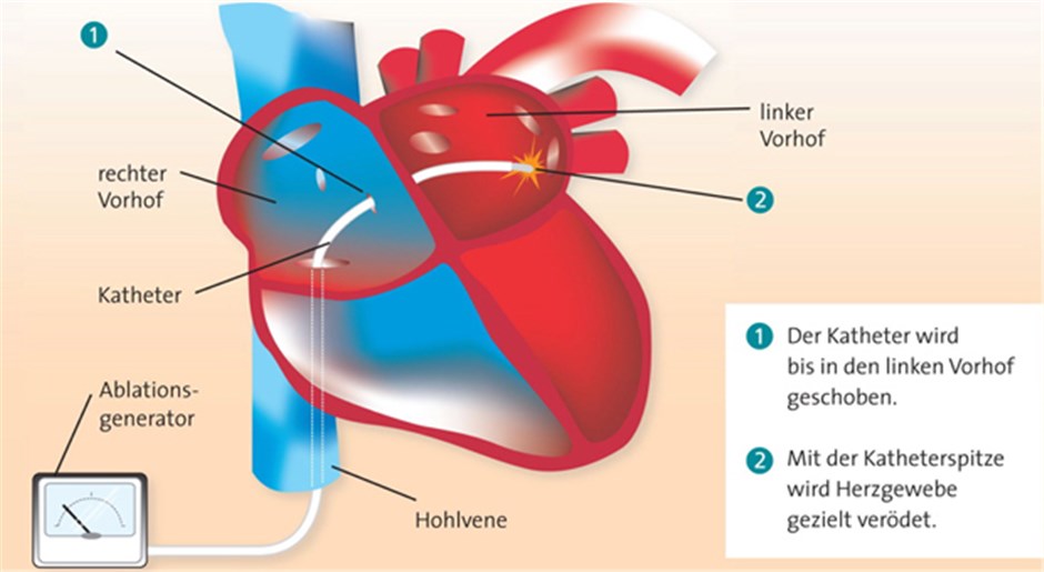 Am Ende des Katheters können Hitze, Kälte oder Mini-Stromstöße gezielt die für die „Störfeuer" verantwortlichen Herzmuskelfasern veröden. Ziel ist es, sie dauerhaft auszuschalten. „Studien haben gezeigt, dass die Katheterablation der medikamentösen Therapie hinsichtlich des langfristigen Erhalts des normalen Herzrhythmus.